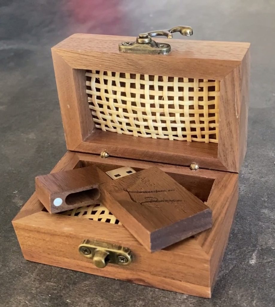 The finished film is recorded onto a stylish branded USB drive, which is presented in a specially crafted wooden box. This unique keepsake not only preserves your memories but also adds a touch of elegance, making it a perfect and meaningful gift.